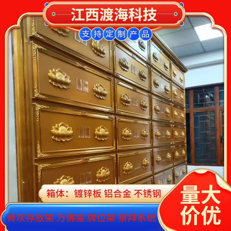 主营产品:骨灰存放架,骨灰盒寄存架,福寿架,万佛龛,牌位架,殡仪馆祭拜系统,寺院智能化管理系统、龙骨吊顶、智能骨灰寄存架