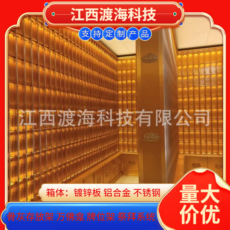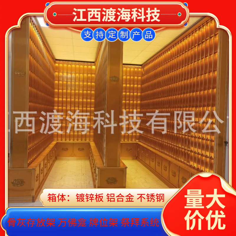 主营产品:骨灰存放架,骨灰盒寄存架,福寿架,万佛龛,牌位架,殡仪馆祭拜系统,寺院智能化管理系统、龙骨吊顶、智能骨灰寄存架