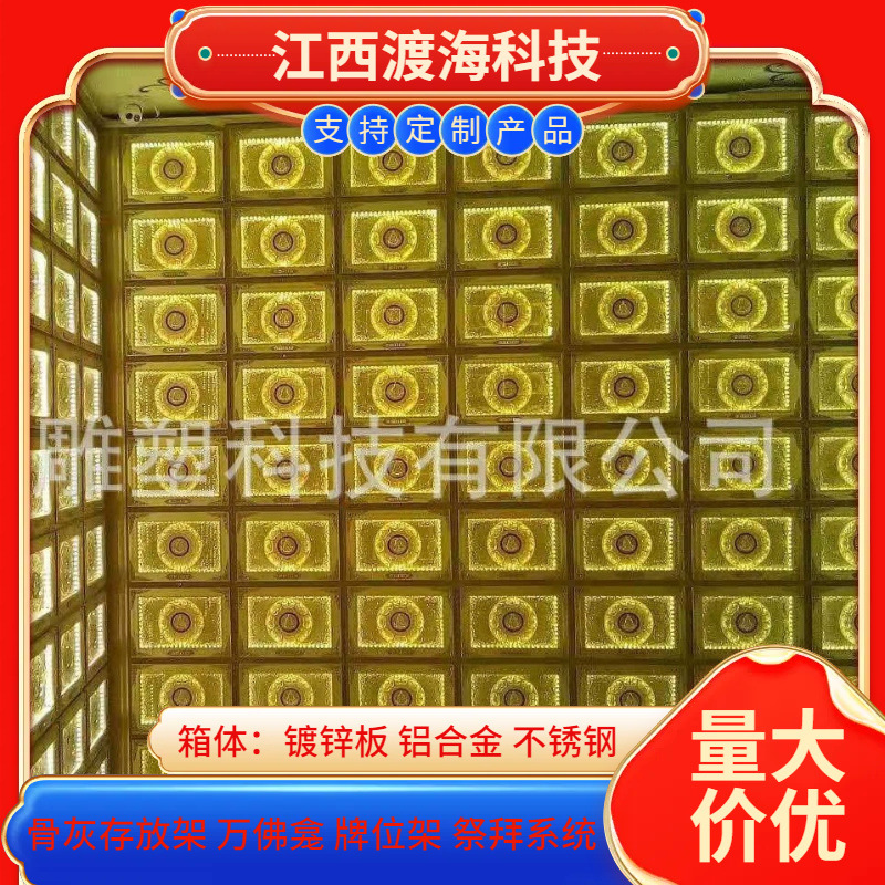 主营产品:骨灰存放架,骨灰盒寄存架,福寿架,万佛龛,牌位架,殡仪馆祭拜系统,寺院智能化管理系统、龙骨吊顶、智能骨灰寄存架