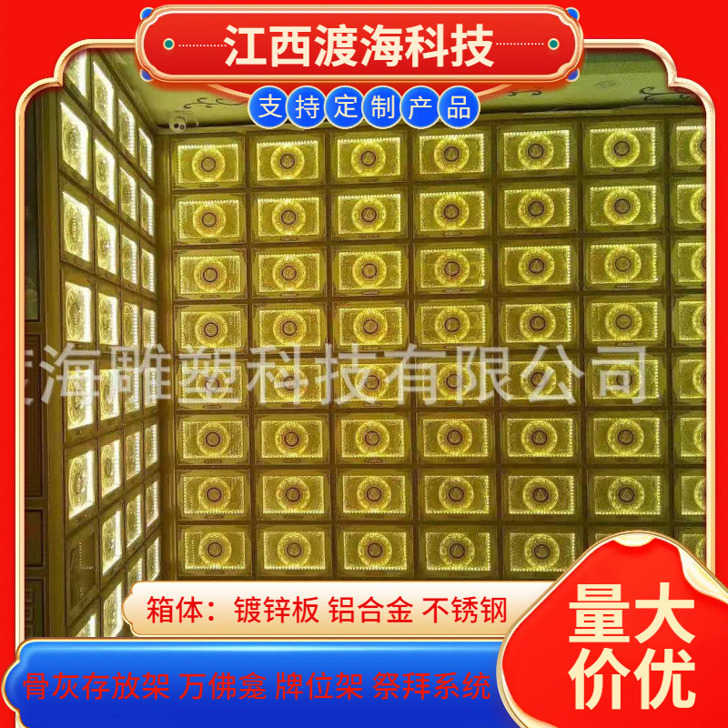 主营产品:骨灰存放架,骨灰盒寄存架,福寿架,万佛龛,牌位架,殡仪馆祭拜系统,寺院智能化管理系统、龙骨吊顶、智能骨灰寄存架