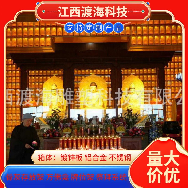 主营产品:骨灰存放架,骨灰盒寄存架,福寿架,万佛龛,牌位架,殡仪馆祭拜系统,寺院智能化管理系统、龙骨吊顶、智能骨灰寄存架