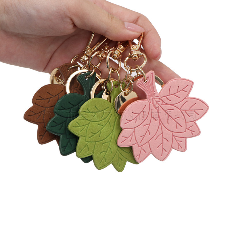 26新品柚子叶造型皮革钥匙扣高级感变色叶子纹路挂件寓意小礼品