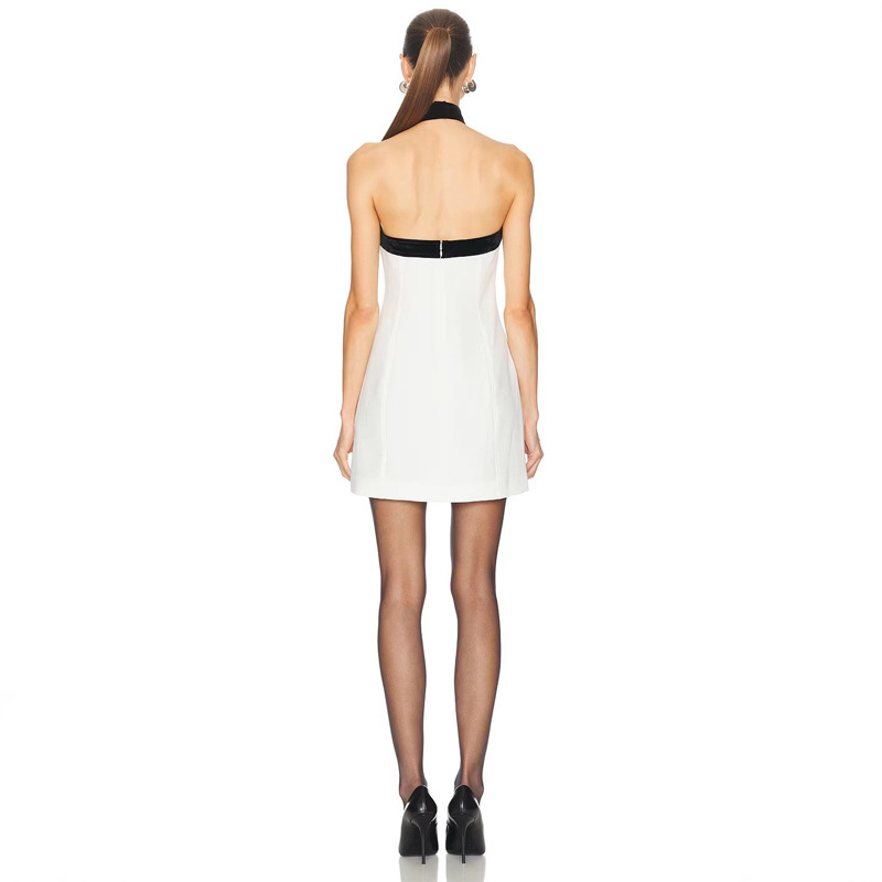 新品亚马逊跨境女装派对晚礼服外贸爆款时尚修身蝴蝶结饰挂脖连衣