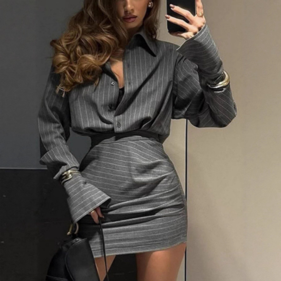 欧美2026跨境速卖通春夏新款条纹上衣短裙两件套休闲 套装 女