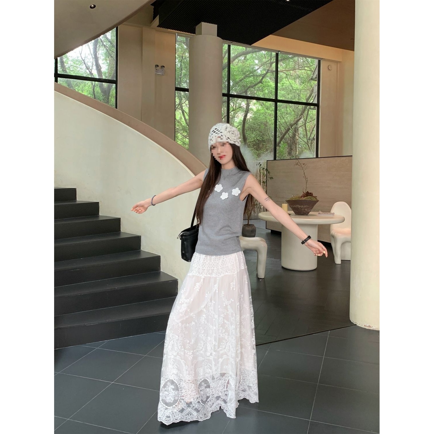 胖MM特大码300斤夏季垂感蕾丝白色半身裙女气质超仙网纱高腰长裙2