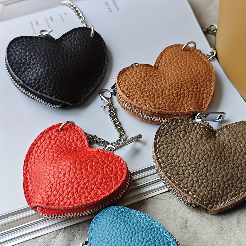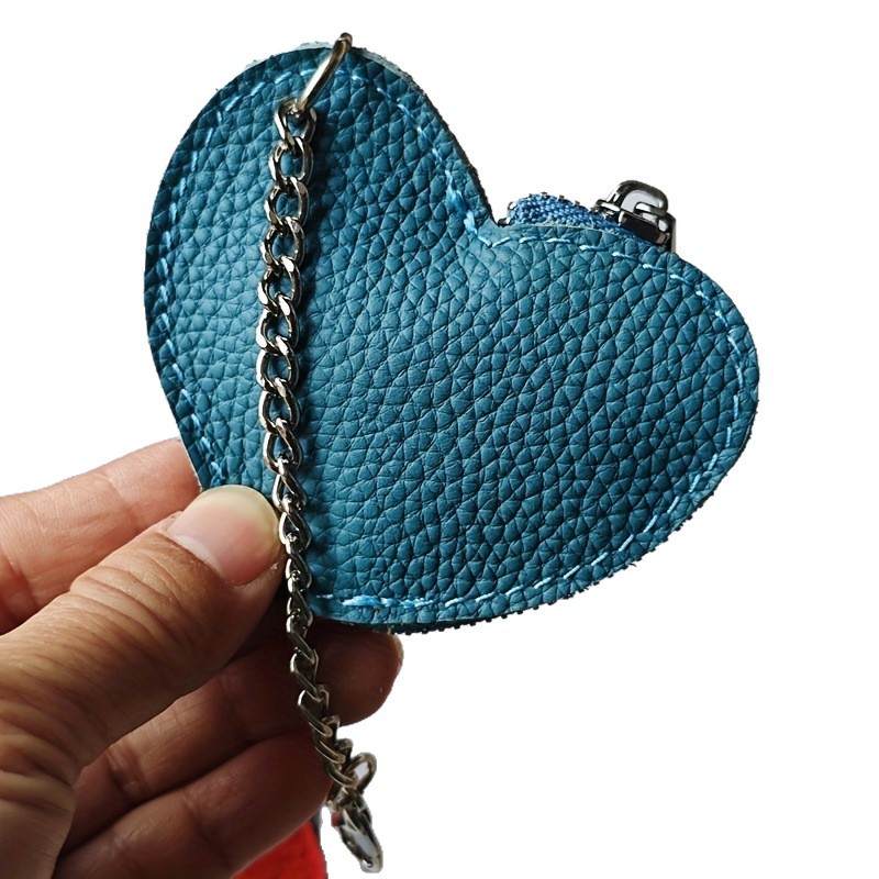 韩系小巧爱心pu皮革零钱包少女心百搭高级荔枝纹挂件拉链钥匙包