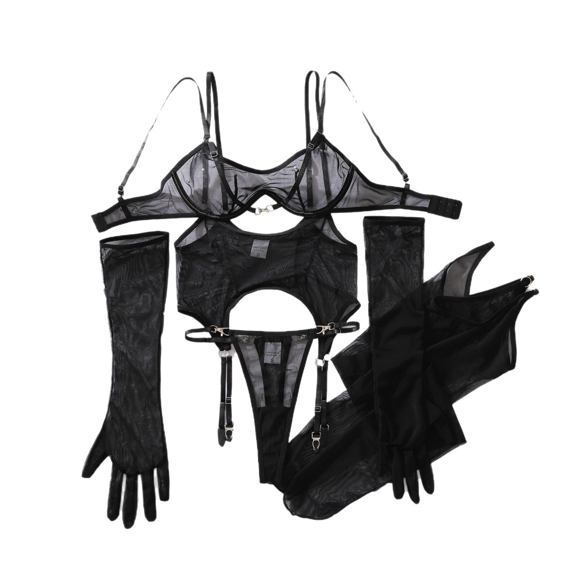 2025欧美跨境高品质舒适网纱透气带丝袜塑身超薄性感内衣分体套装