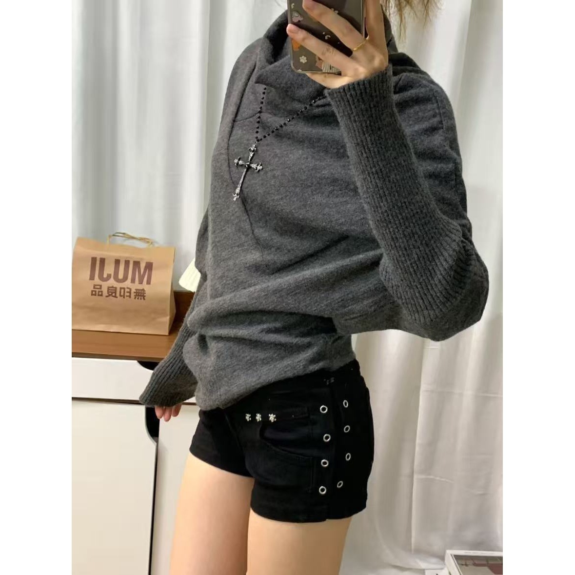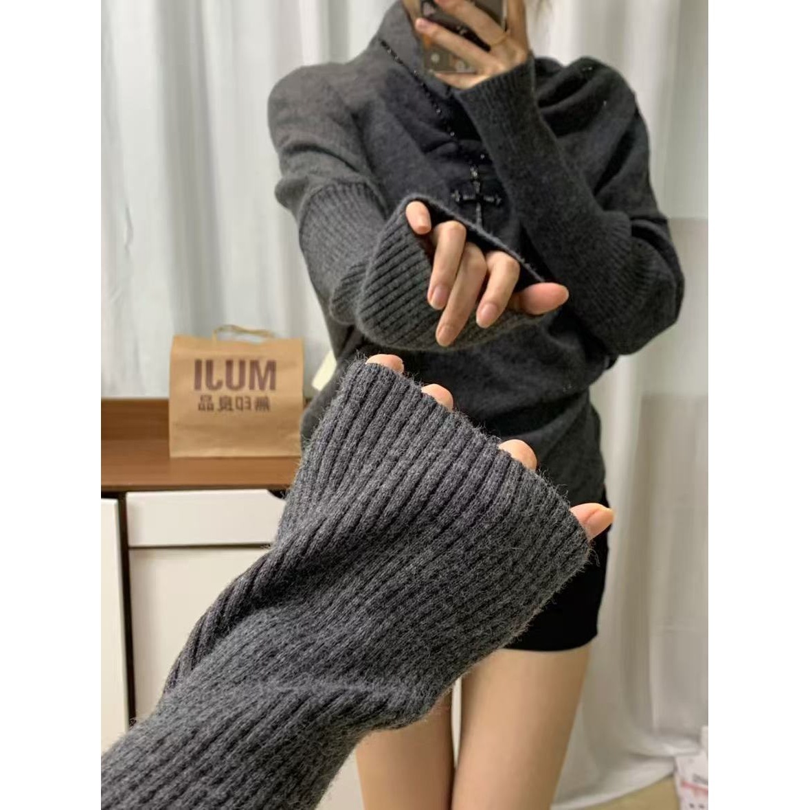美式复古蝙蝠袖高领灰色毛衣女2025秋季新款套头针织衫设计感上衣