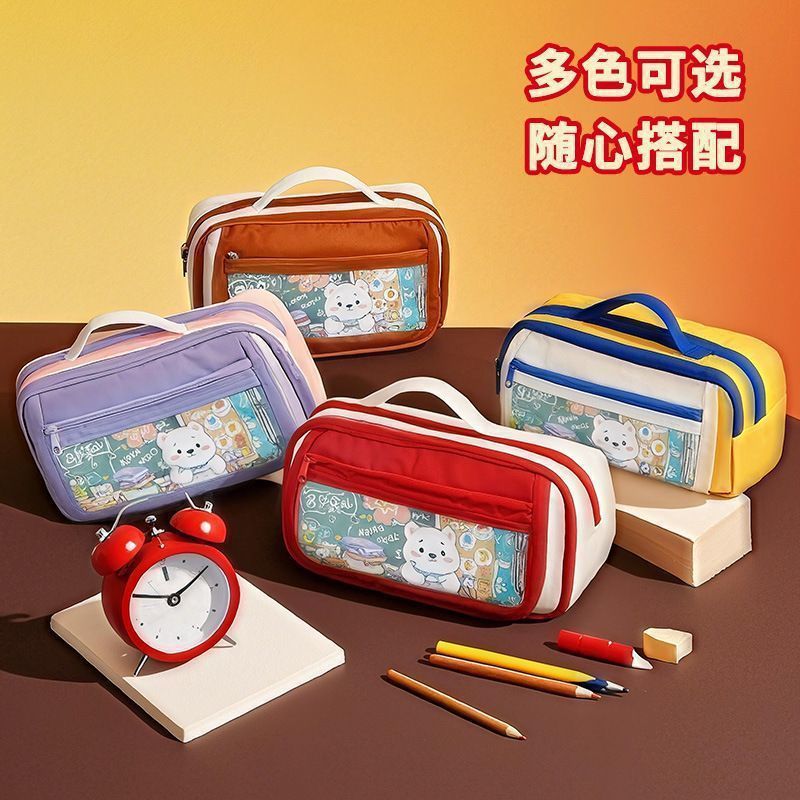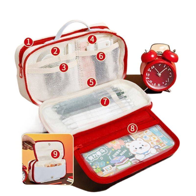 撞色手提红色笔袋
