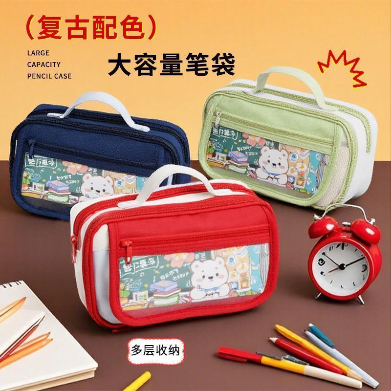 撞色手提绿色笔袋