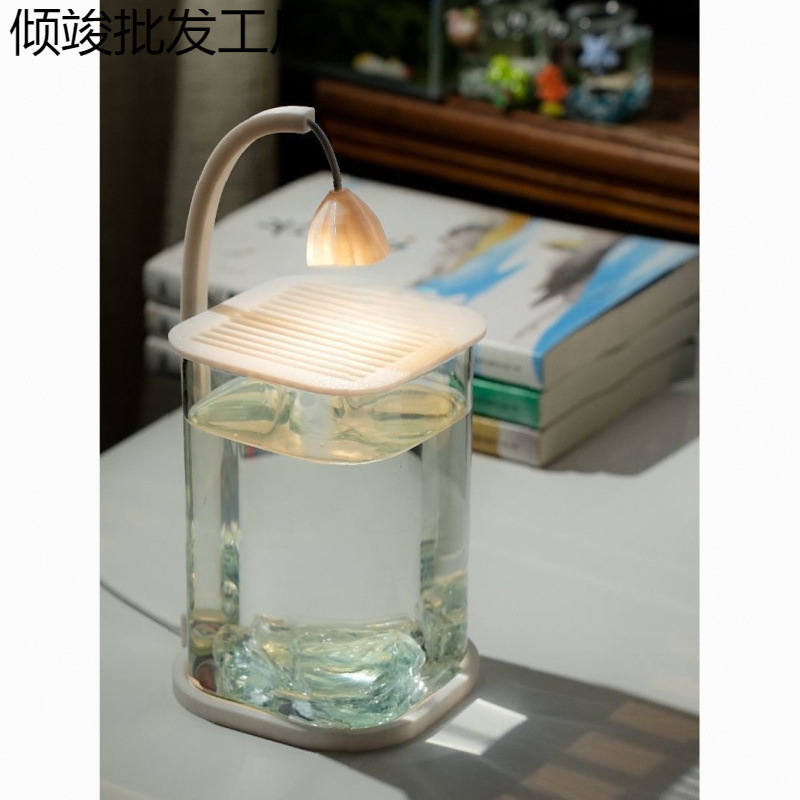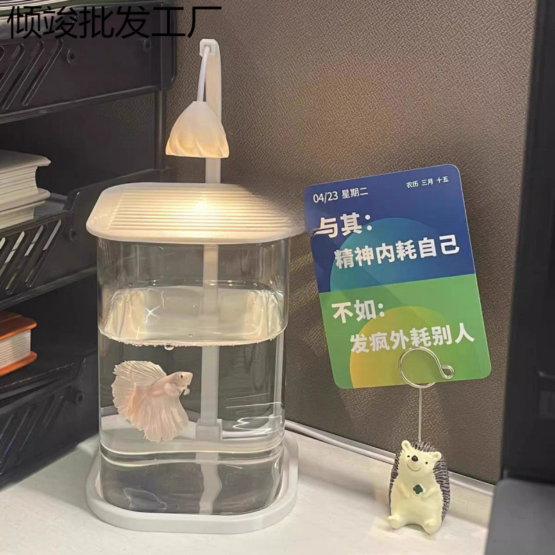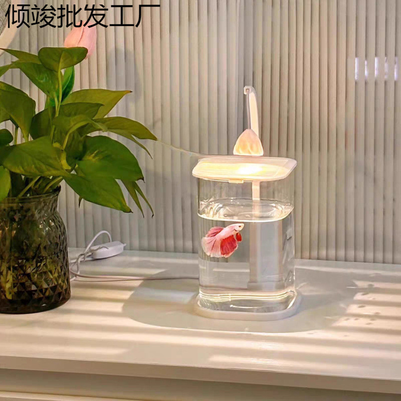 鱼缸斗鱼专用超白小型懒人玻璃缸客厅创意桌面摆件高级感观赏灯