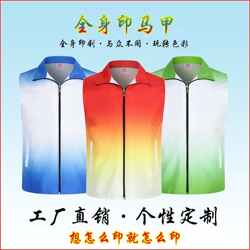 渐变全身印广告衫马甲logo厂家直销工作服志愿者义工团体活动定制