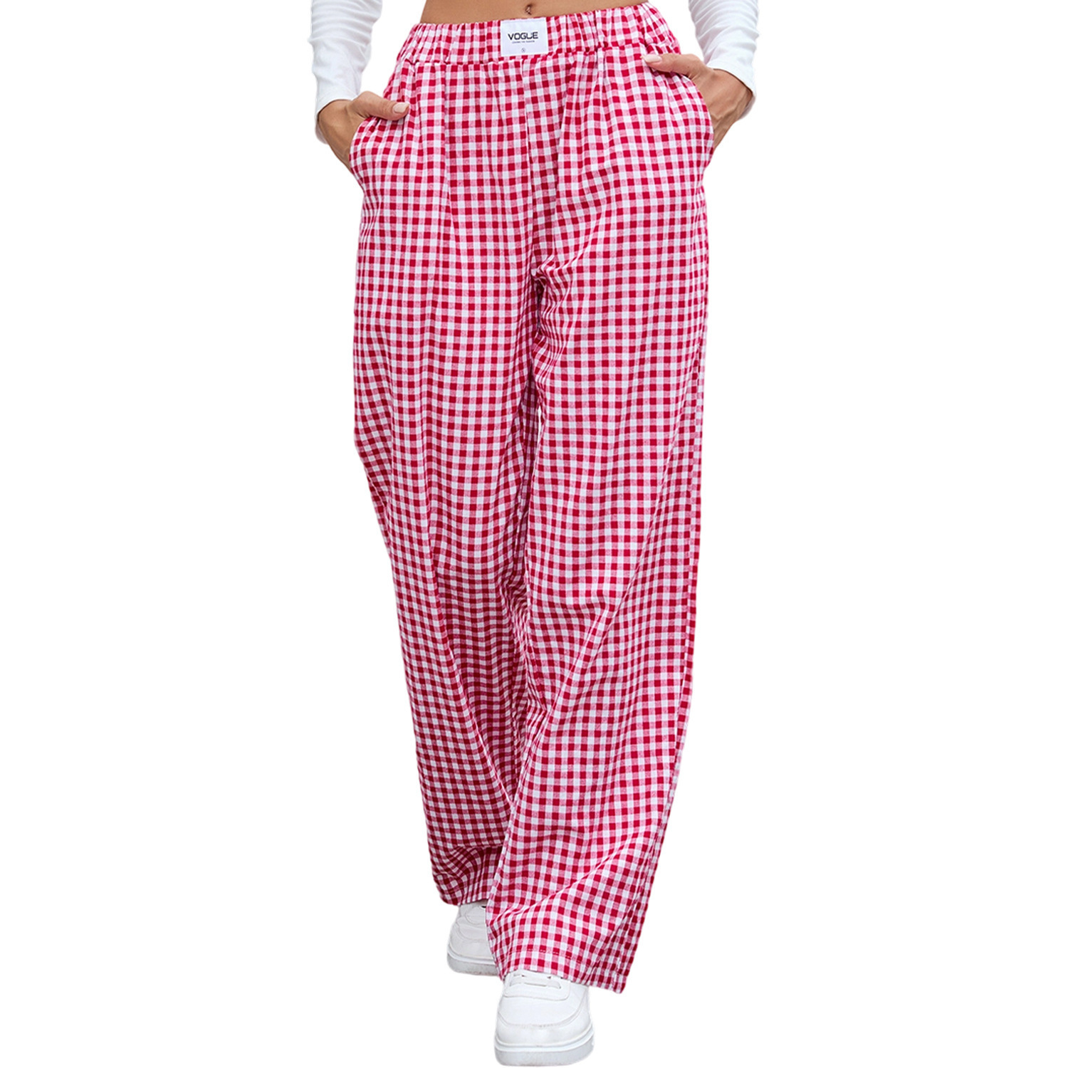 欧美跨境女装2026亚马逊新款格子休闲平角裤宽松口袋长裤女