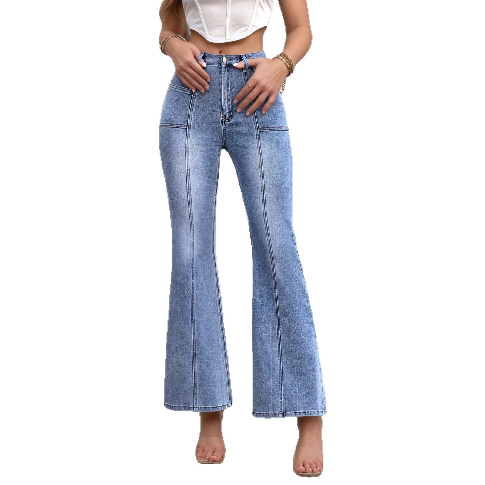 现货欧美爆款女装 时尚个性女式秋冬新款弹力修身牛仔喇叭裤