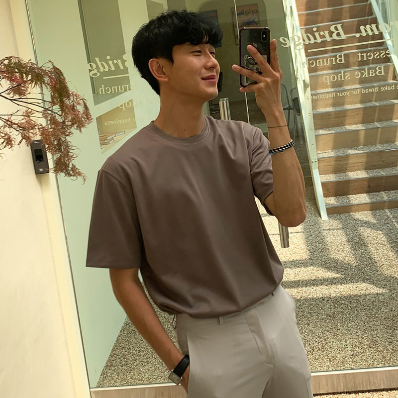 夏季韩版纯色圆领半袖休闲潮牌潮流宽松百搭短袖T恤男打底衫
