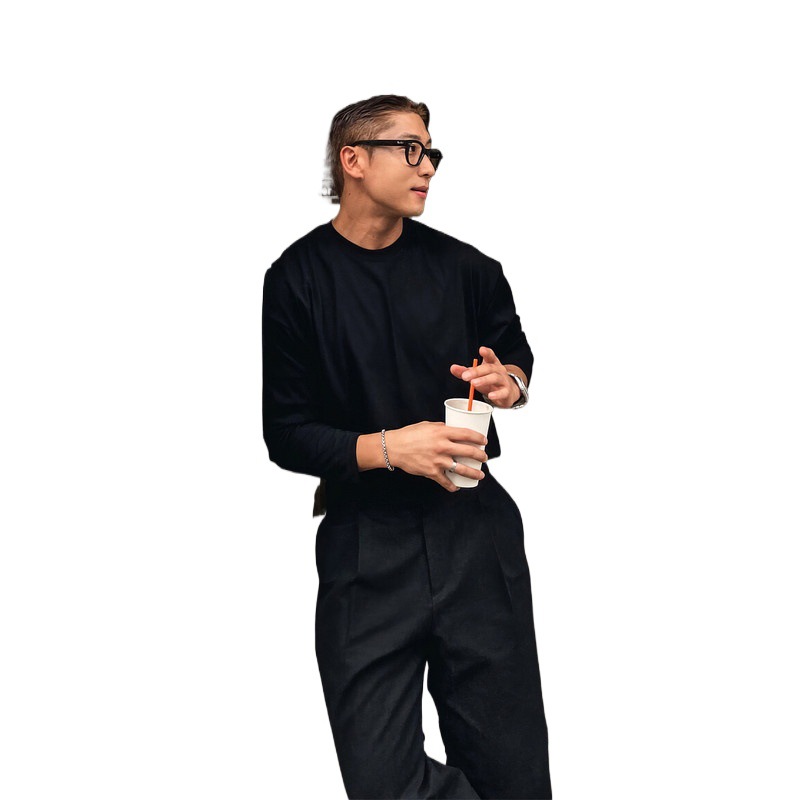 美式重磅白色长袖T恤男春秋季潮流百搭基础款宽松休闲打底体恤衫
