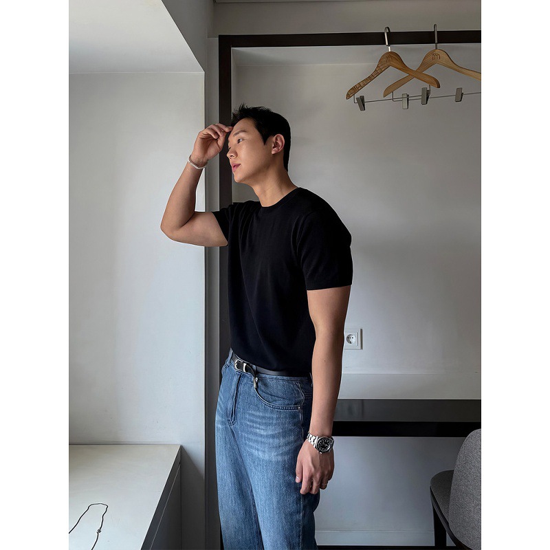 黑色正肩短袖T恤男款夏季健身显肌肉圆领体恤重磅小领口修身上衣
