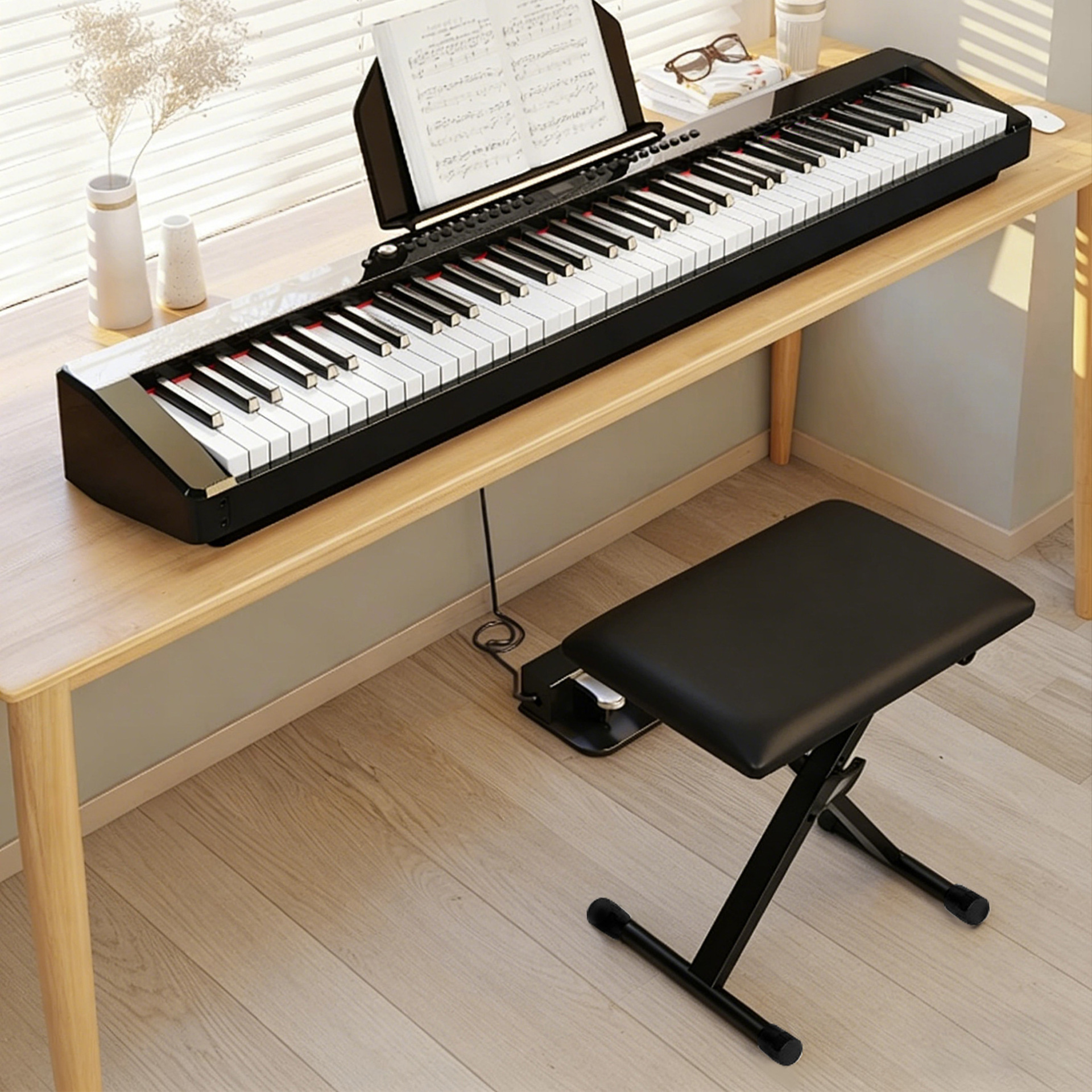 跨境琴凳可升降四档调节X型琴电子琴古筝凳子海绵便携折叠钢琴凳