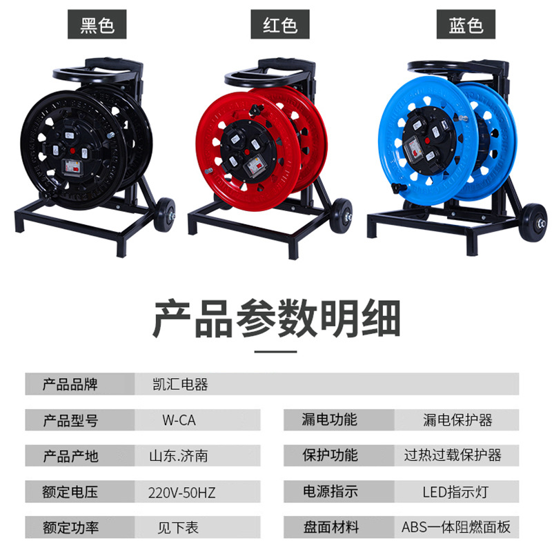 凯汇电器220V轮车320电缆盘W-CA 移动电缆盘 电缆卷盘 电源盘