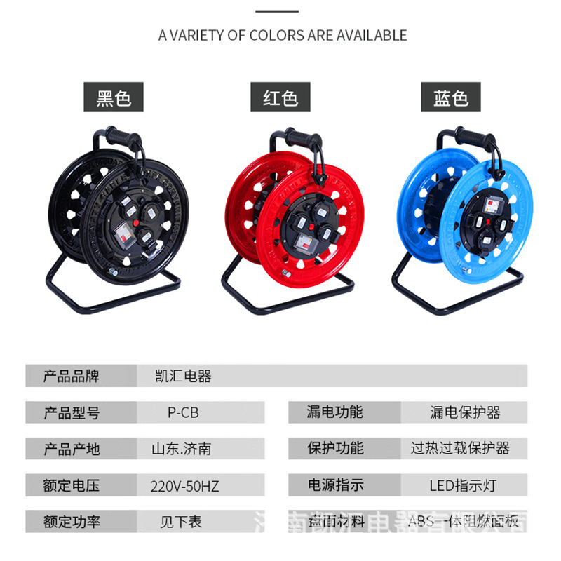 凯汇电器移动绕线电线盘220V漏电保护加长卷线盘卷线轴移动电缆盘
