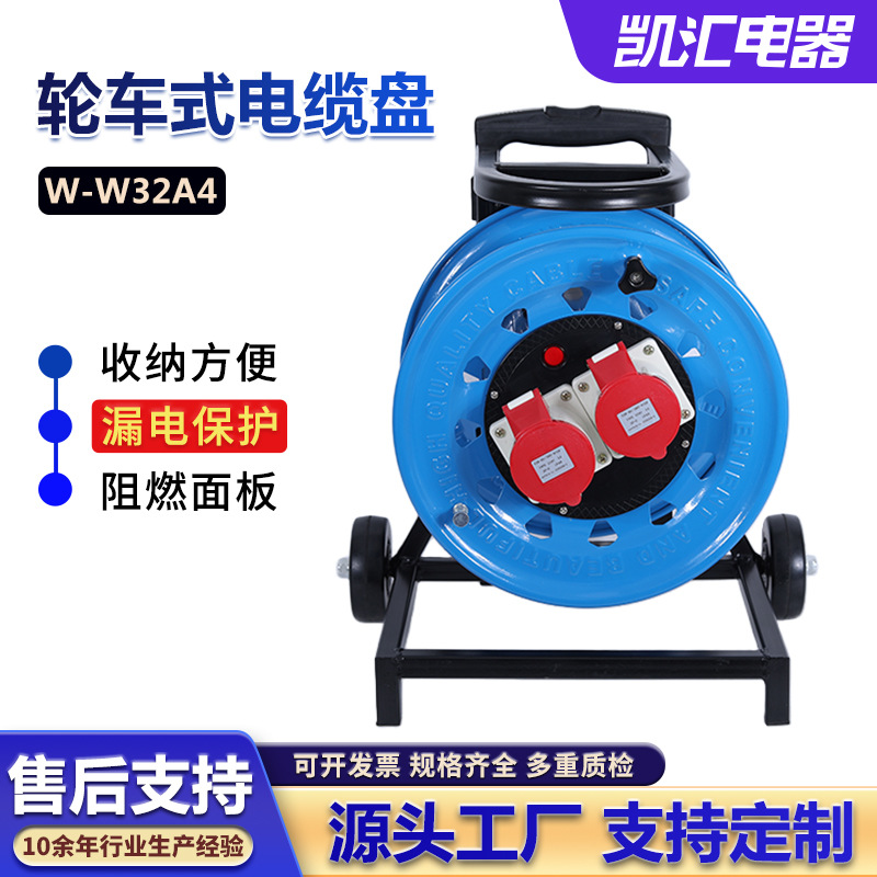 凯汇电器轮车320工业插IP44级32A4芯(W-W32A4)移动电缆盘