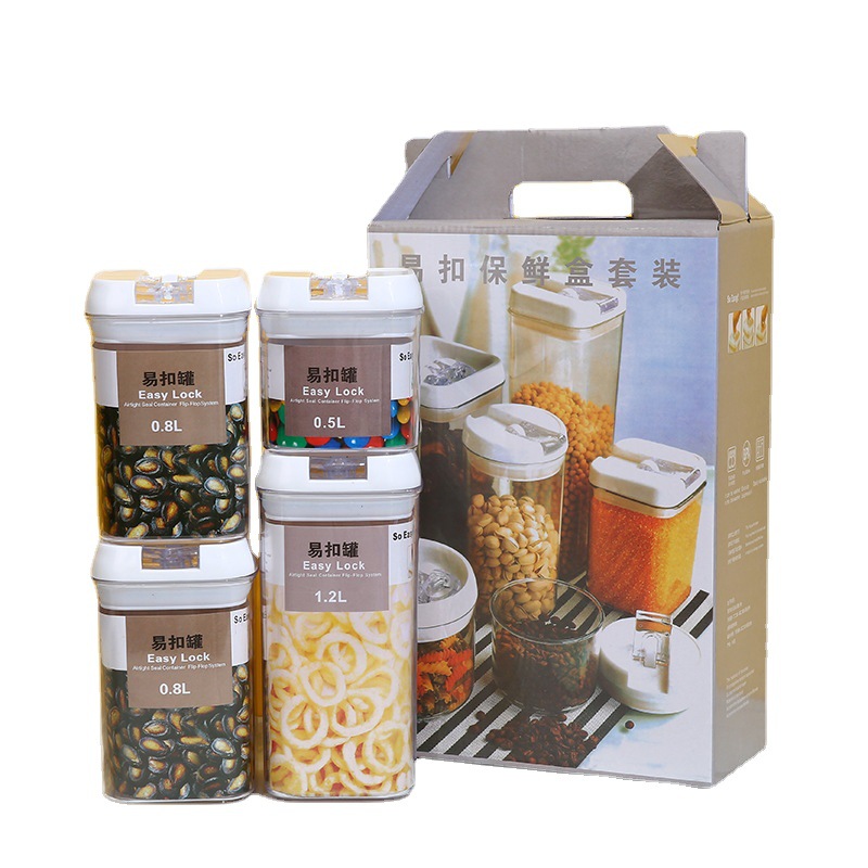 透明方形塑料易扣罐四件套套装 食品密封奶粉罐子 五谷杂粮收纳罐