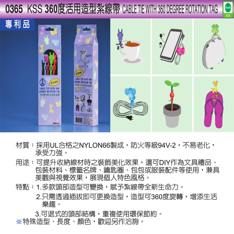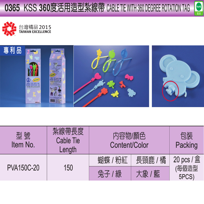 PVA150C-20360度活用造型扎带台湾凯KSS士士20根/盒彩色组合线束