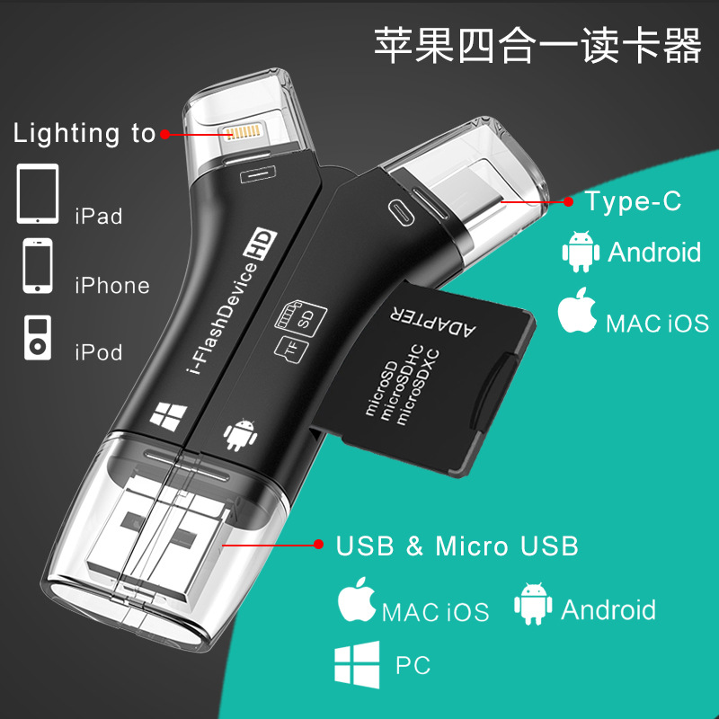 适用苹果读卡器otg四合一多功能读卡器内存卡外贸高速手机读卡器