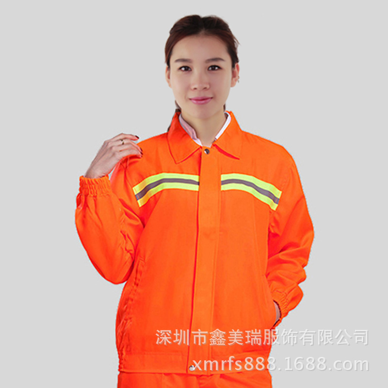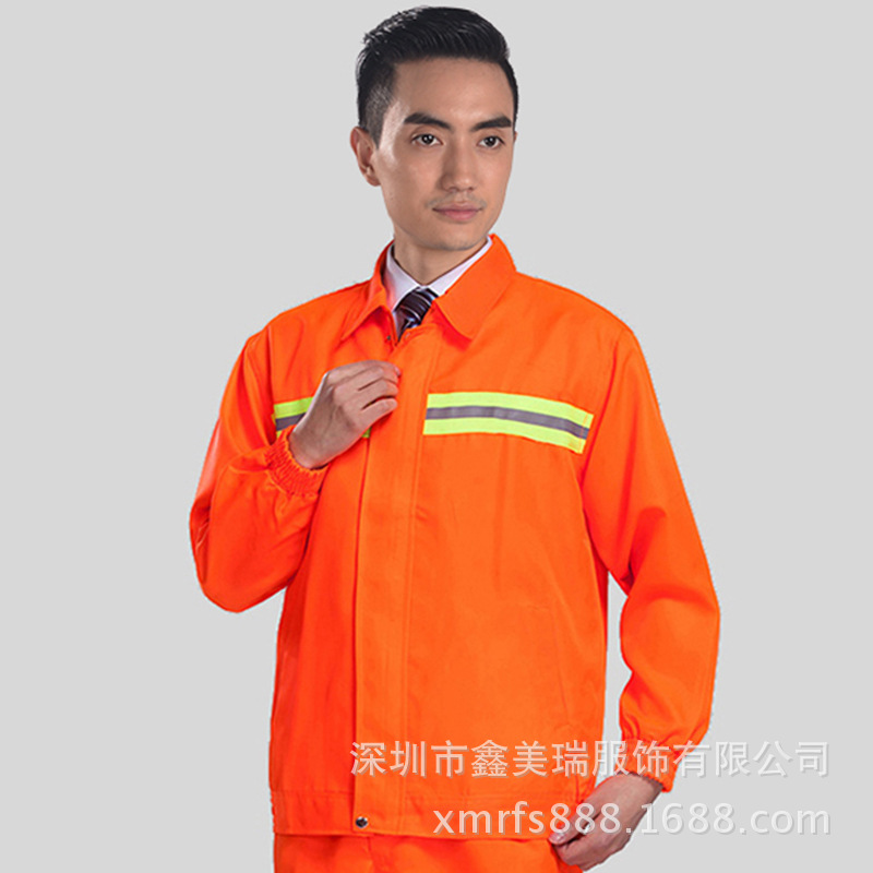 供应橙色工作服套装 长袖冬季带反光条劳保服交通环卫服 生产厂家