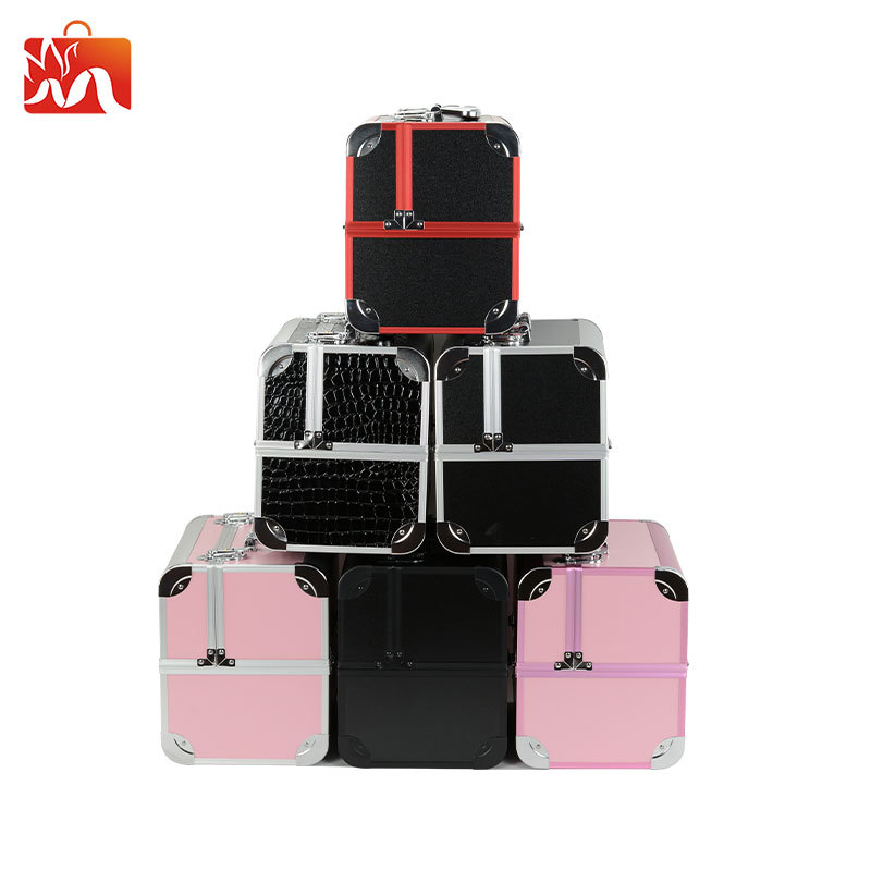 折叠手提化妆箱铝合金双开手提化妆品箱子专业美容美发美甲工具箱