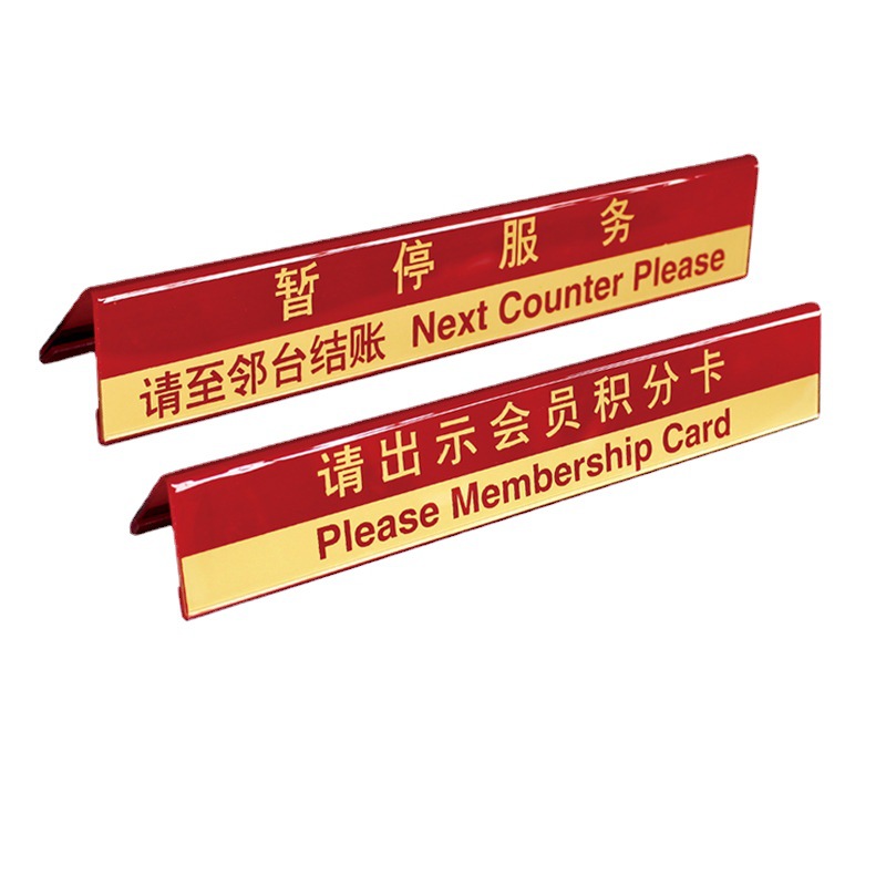 美晨收银台出示会员卡收银牌暂停服务隔板亚克力提示板木质展示牌