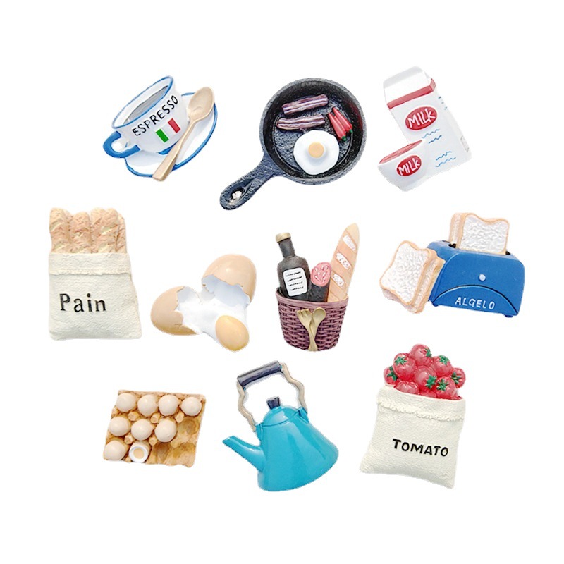 欧式仿真面早餐包牛奶培根煎鸡蛋平底锅树脂冰箱贴创意磁铁批发