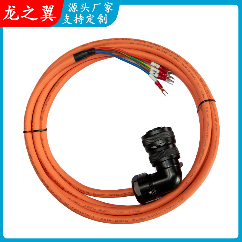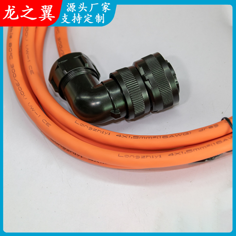 4芯1.5平方橙色动力线军规4P航空弯头转U型端子带线5米耐磨