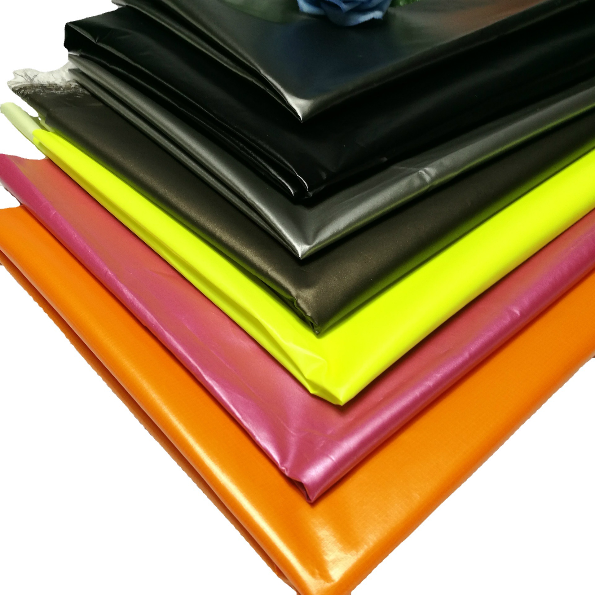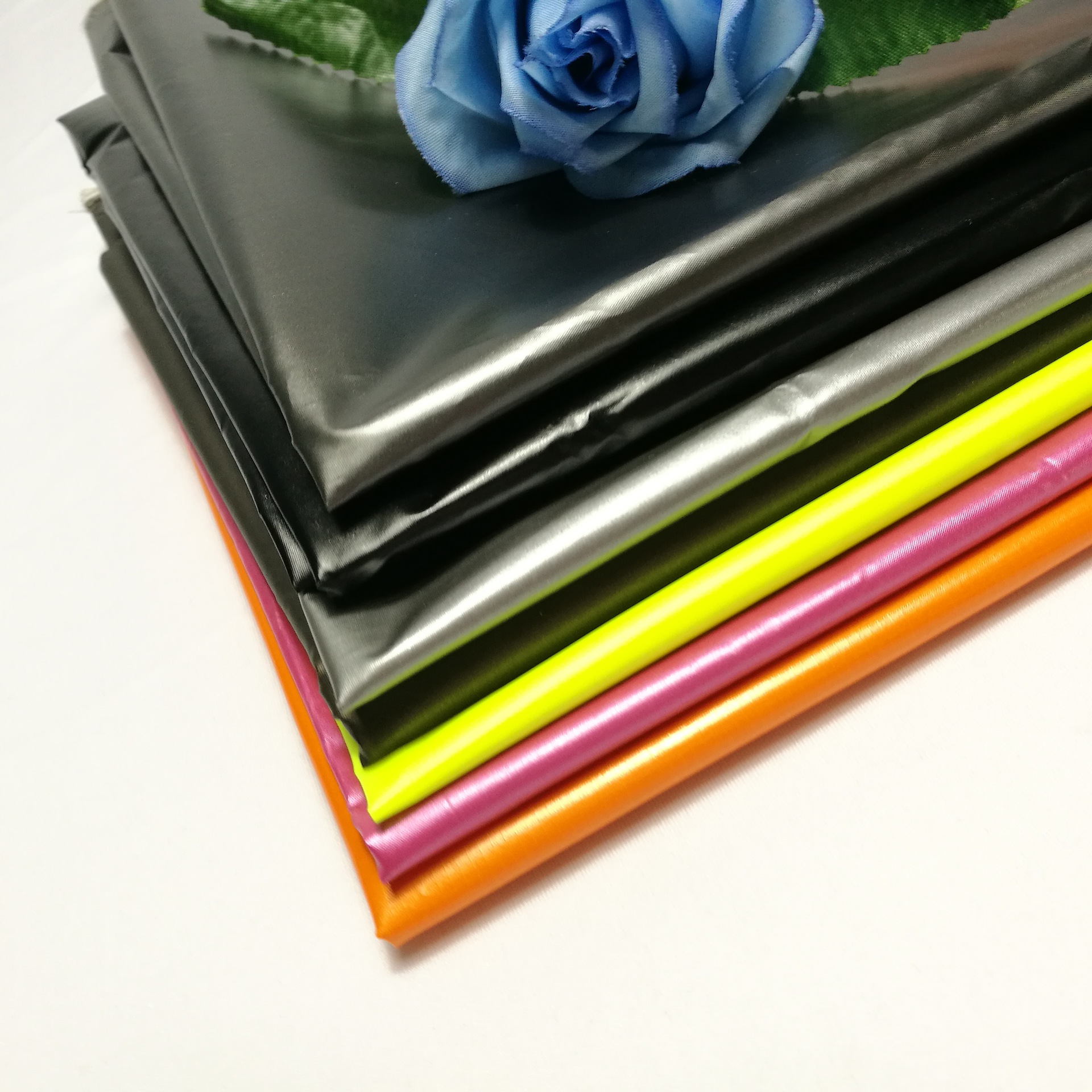 现货20D尼龙涂层防绒防水防油布 珠光皮膜镜面亮PU仿皮羽绒服面料