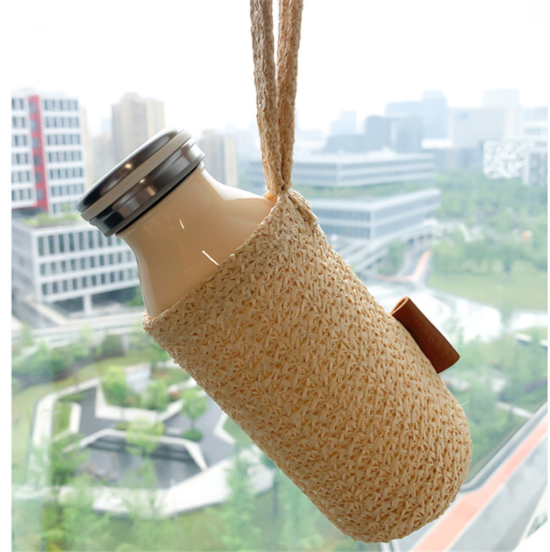 pp草新材质编制杯套 户外便携式水杯保护套 350ml牛奶瓶拿铁瓶套