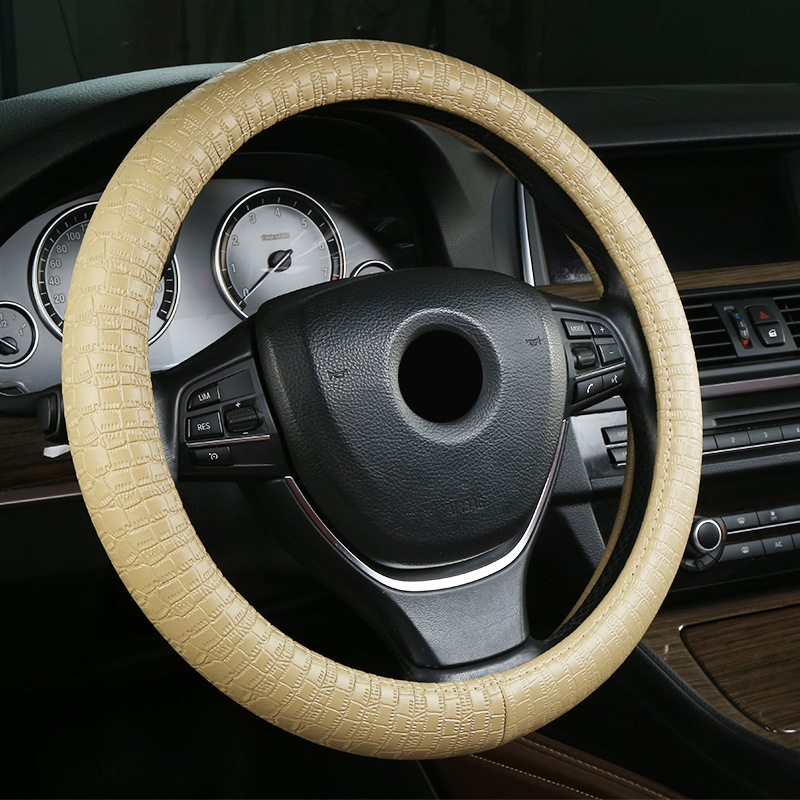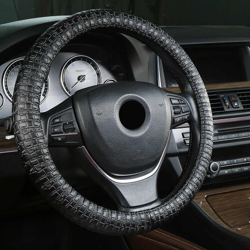 厂家批发四季通用汽车方向盘套真皮把套打孔防滑商务风