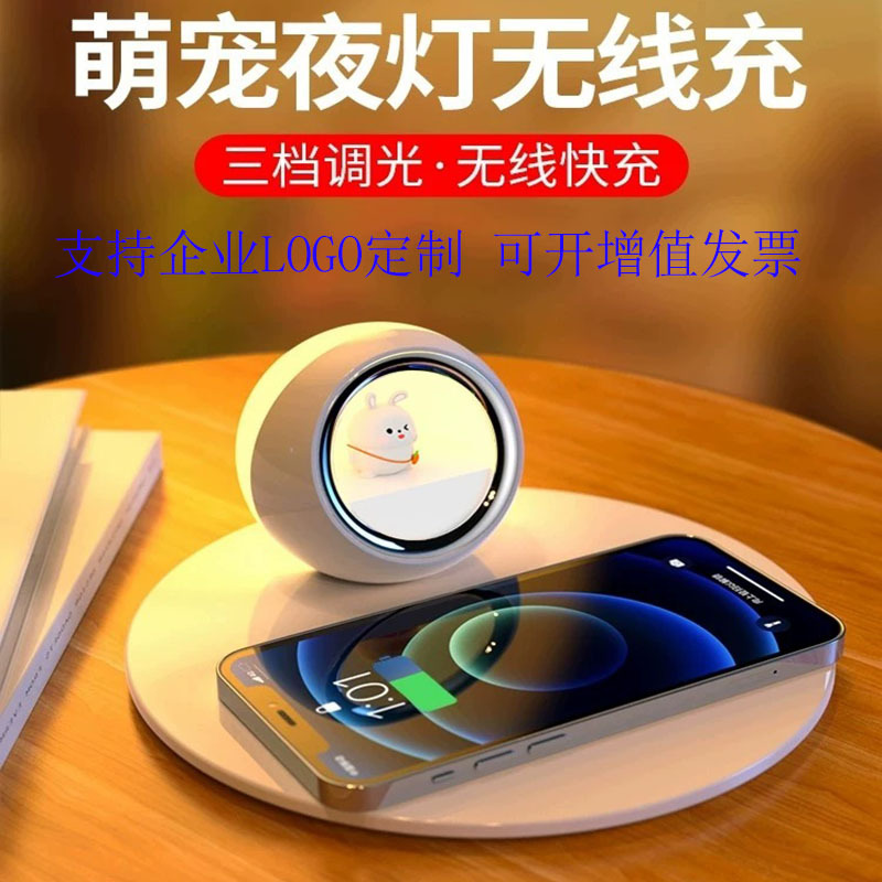 跨境亚马逊手机无线充电器带小夜灯伴公司活动礼品LOGO丝印送客人