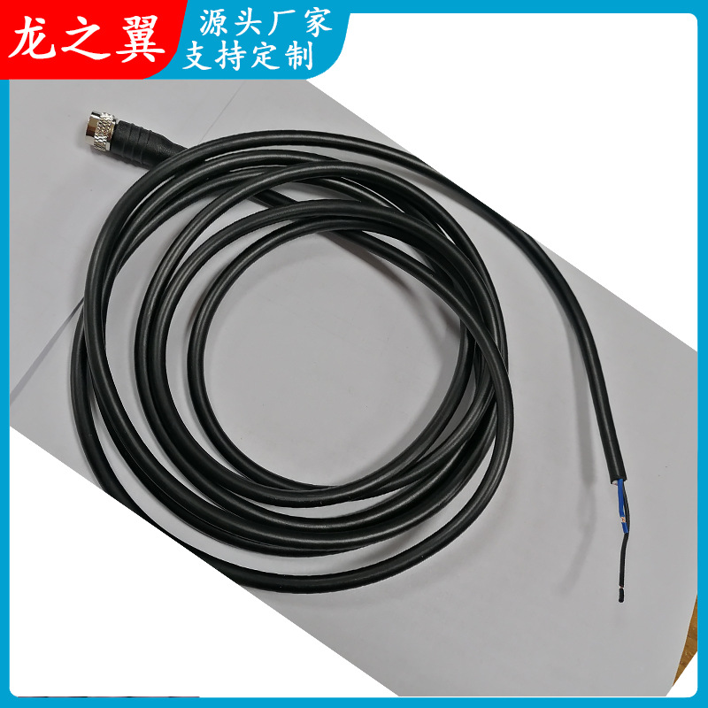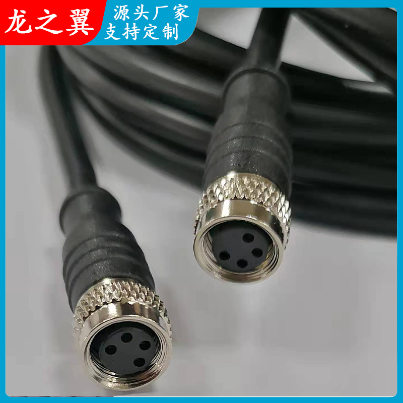 4芯24AWG黑色抗油耐酸碱电缆M8 4孔4针带线2米预铸注塑防水连接器