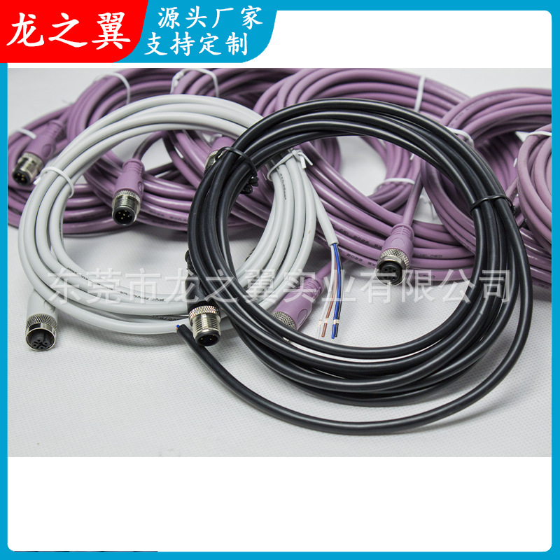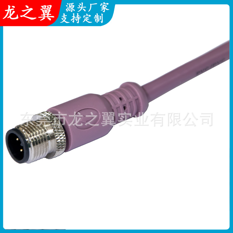 M12 4针4孔0.34平方紫色耐酸碱抗油电缆公母直头带线2米连接器