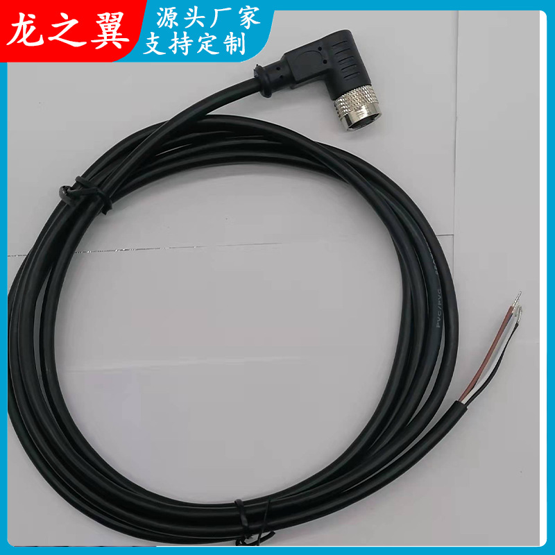 M12弯头4针4孔带线接近开关插头连接器耐机油耐磨蚀非移改性PVC线