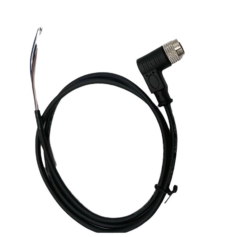 耐油耐酸碱性PUR电缆M8 5孔带线2米防水连接器90度弯型龙之翼插头
