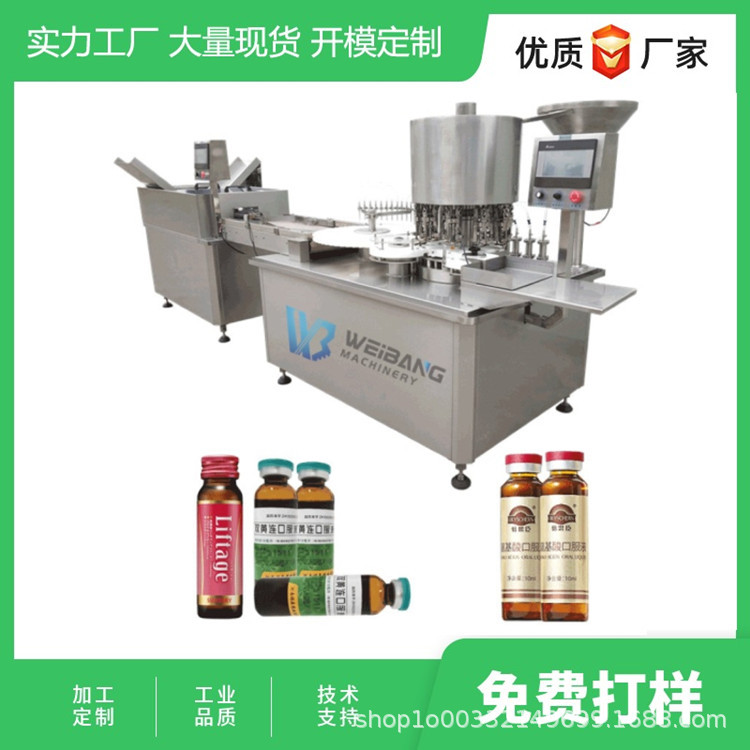 全自动西林瓶灌装生产线 口服液灌装轧盖锁盖一体机 糖浆灌装机