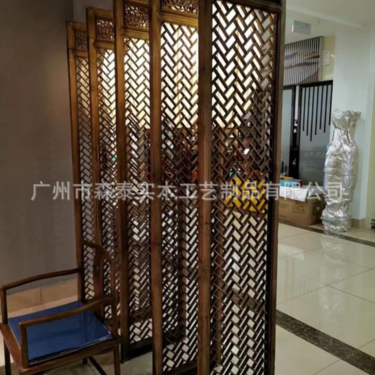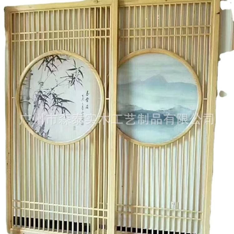 新中式实木客厅屏风隔断 玄关背景墙定制 家居室内隔断