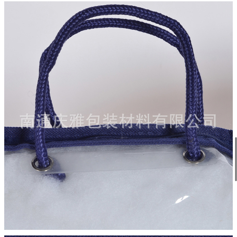 半透明打孔穿绳手提枕芯刺绣无纺印logo包装袋pvc拼接枕头收纳