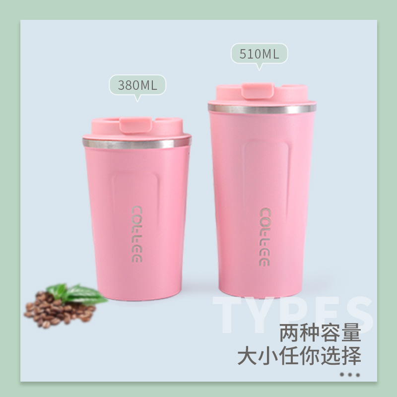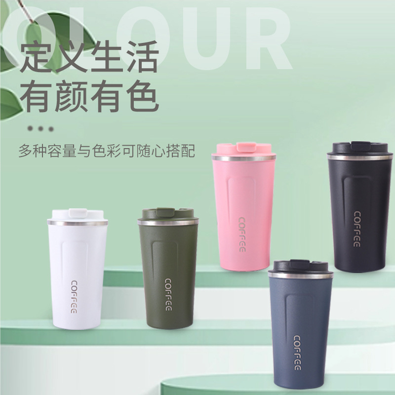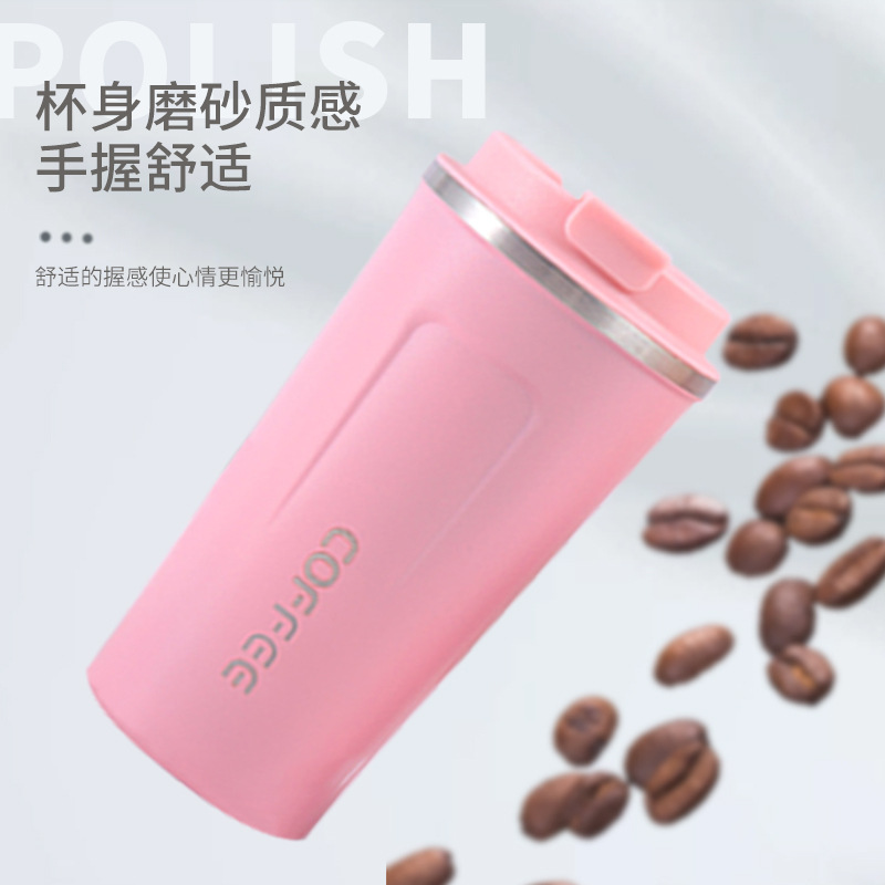创意304不锈钢咖啡杯翻盖便携车载随手杯真空保温杯礼品水杯批发