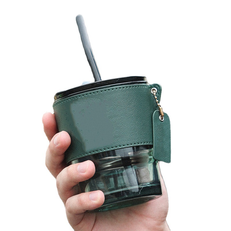 新款竹节杯皮革400ml咖啡杯套ins抖音热款吸管玻璃杯套送同色杯垫