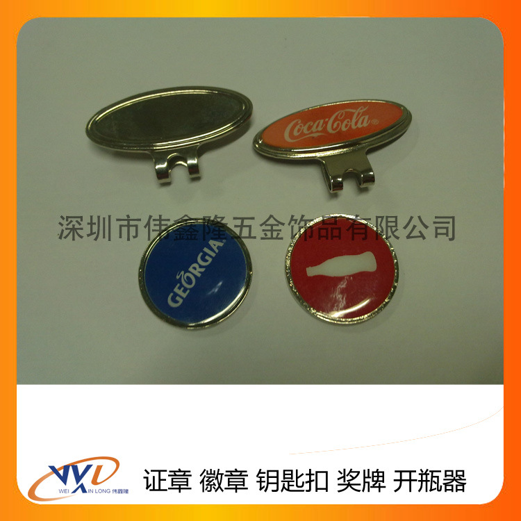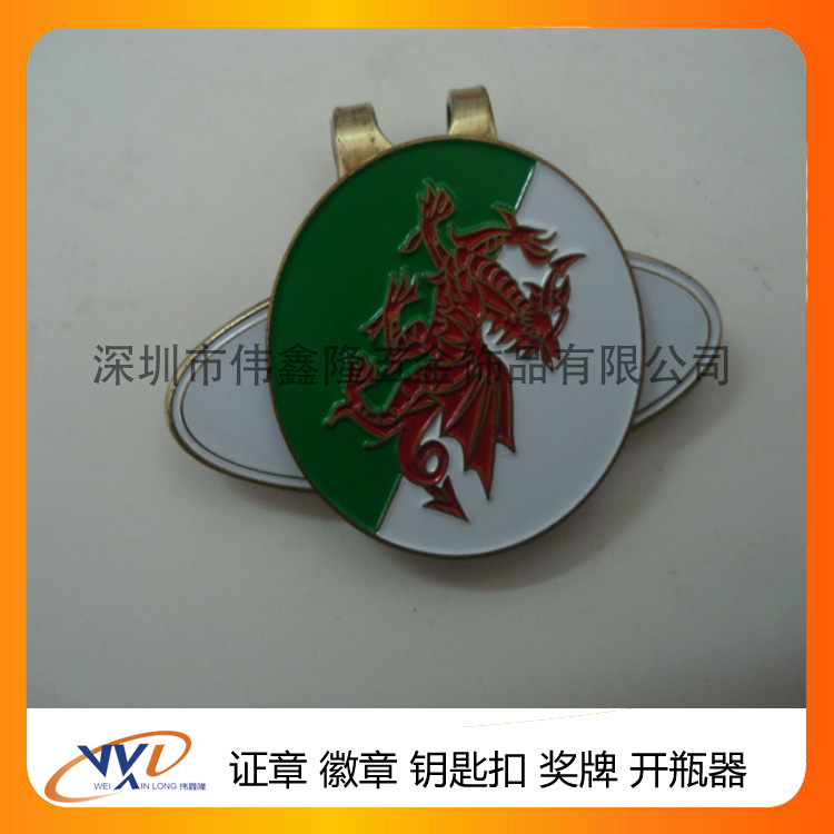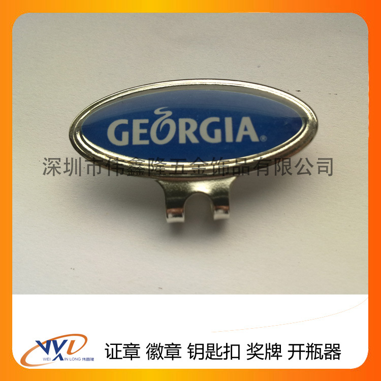 厂家定制高尔夫金属帽夹 B马克帽檐夹子 珐琅印刷烤漆滴胶铜帽夹