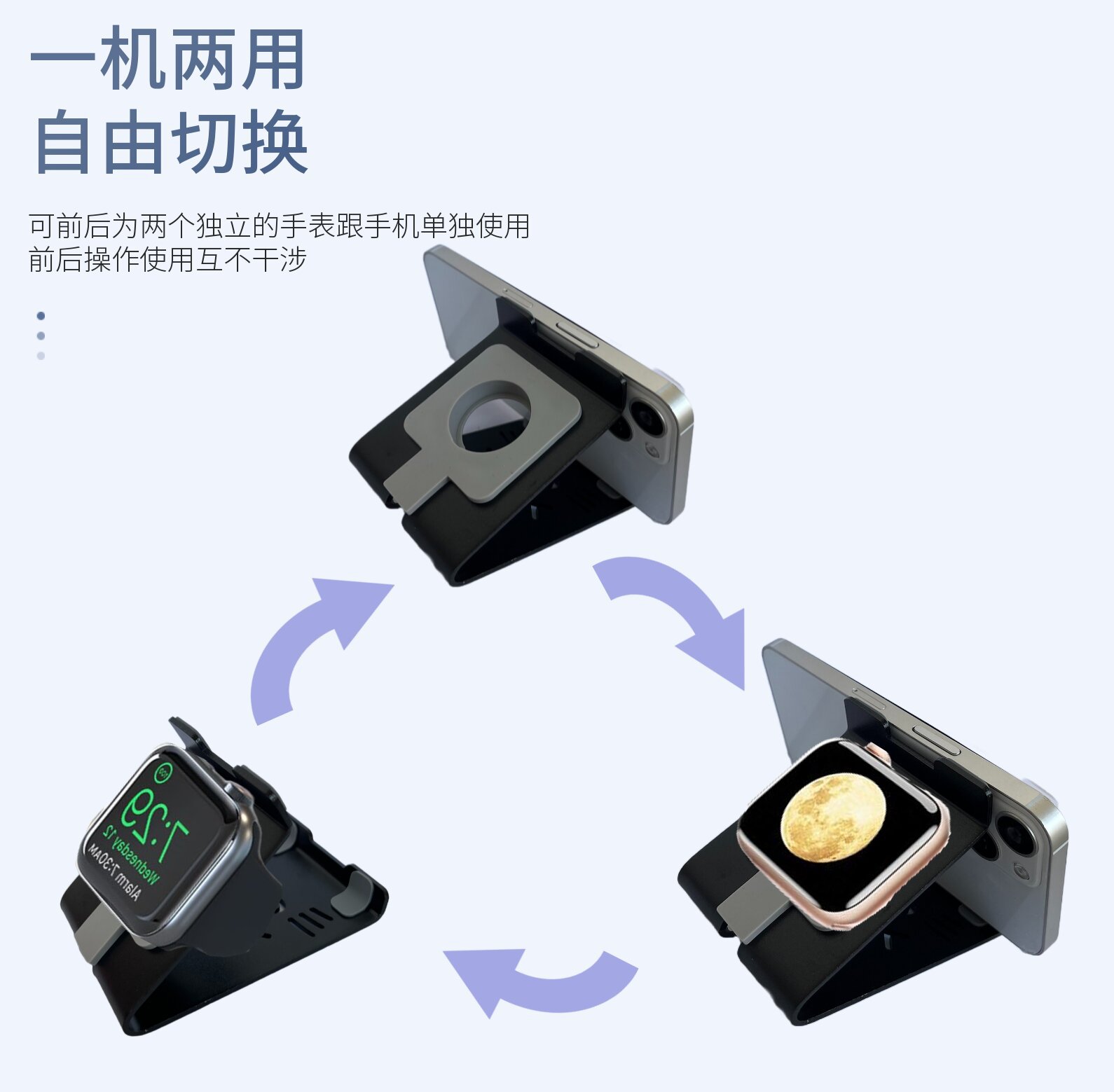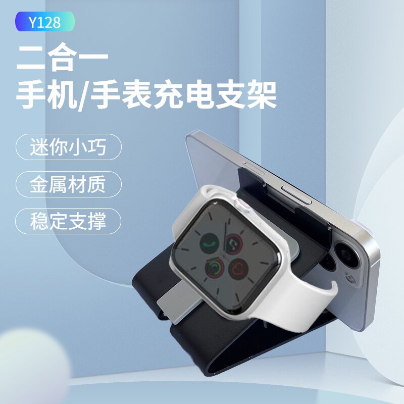 新款2合1金属铝合金适用于苹果手表充电底座手机平板支架手表支架