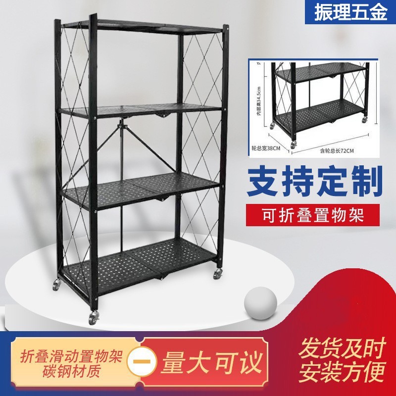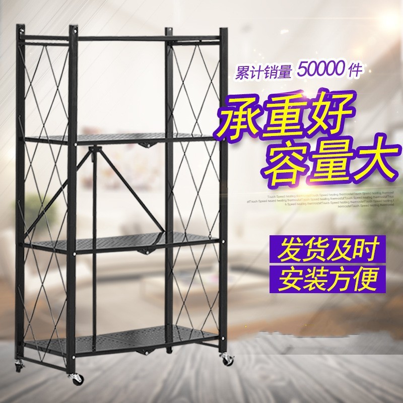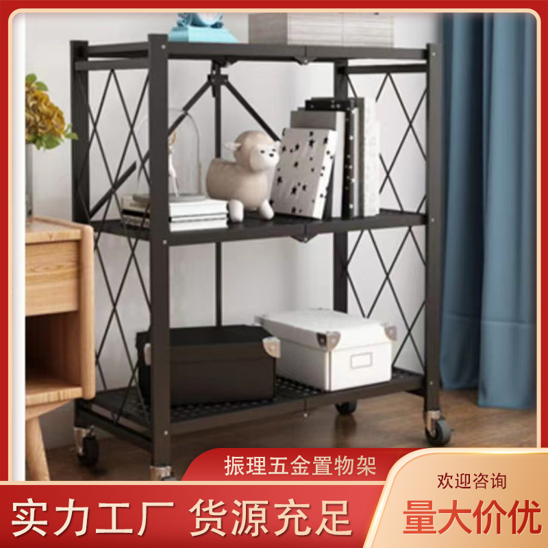 厂家定制免安装厨房折叠置物架铁艺落地收纳储物架可移动微波炉架
