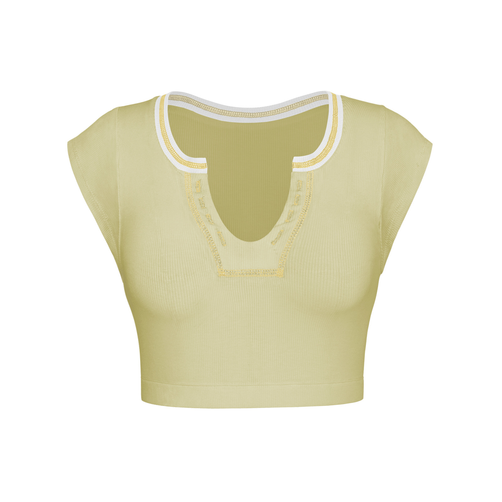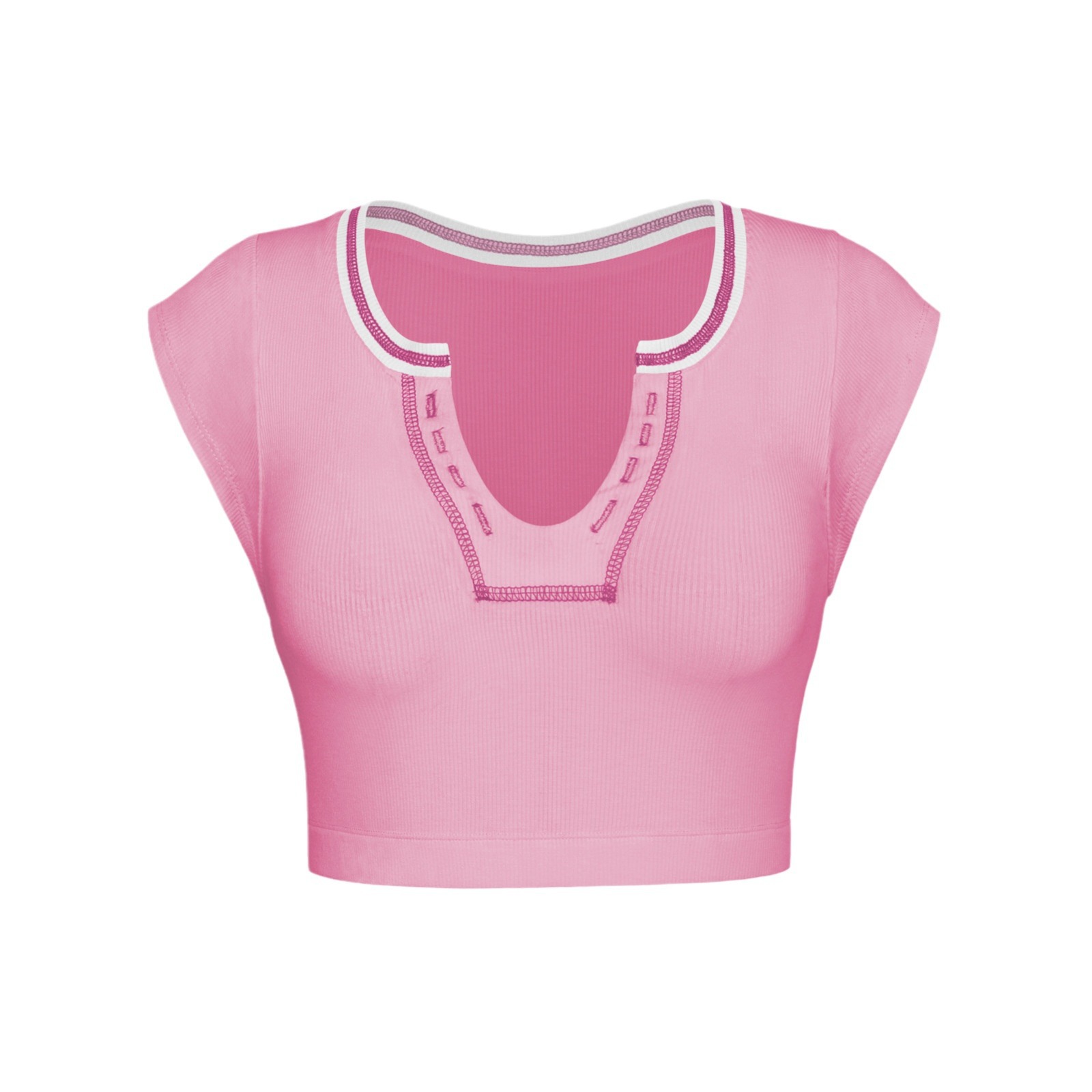 夏日辣妹必备单排扣V领露脐T恤修身短袖显胸设计欧美性感吸睛爆款